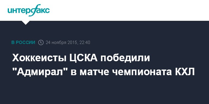 Москва. 24 ноября. INTERFAX.RU - В матче очередного тура регулярного чемпионата Континентальной хоккейной лиги (КХЛ) московский ЦСКА на своем льду нанес поражение владивостокскому "Адмиралу".
