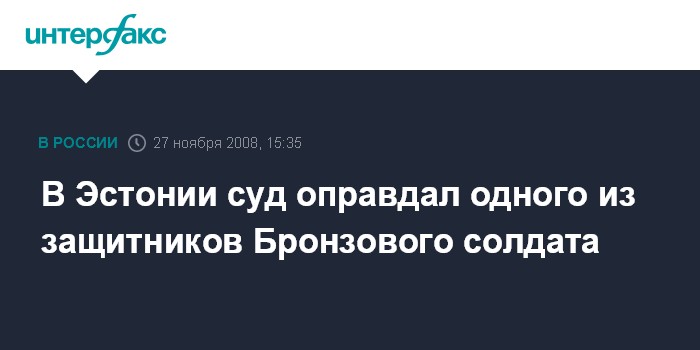 Москва. 27 ноября. INTERFAX.RU - В Эстонии Харьюский (Harju) уездный суд оправдал участника массовых волнений русскоязычного населения в связи с переносом останков советских солдат, павших при освобождении Таллина от фашистов.