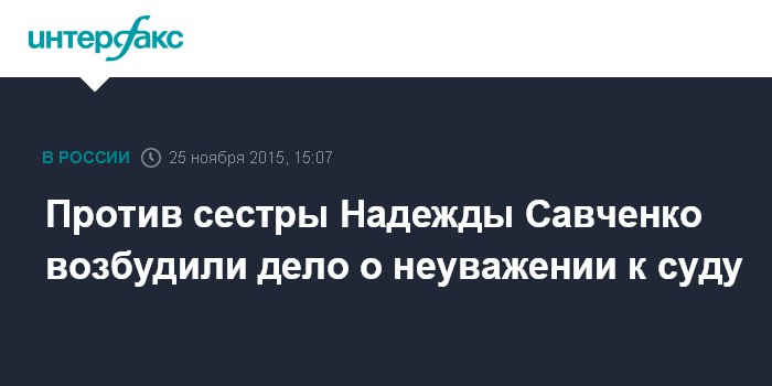 Москва. 25 ноября. INTERFAX.RU - Адвокат Надежды Савченко, которую судят по делу об убийстве российских журналистов, сообщил о том, что сестра украинской летчицы стала фигуранткой уголовного дела.