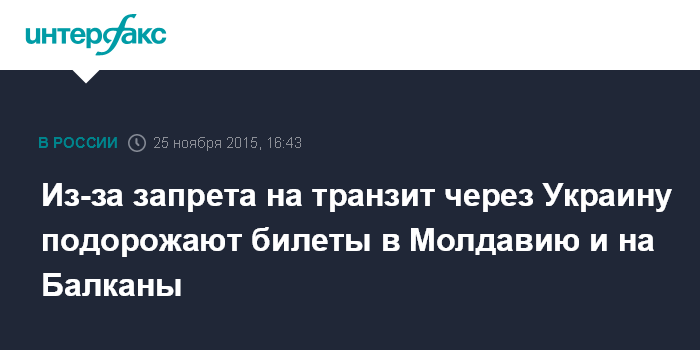 Из-за запрета на транзит через Украину подорожают билеты в Молдавию и на Балканы