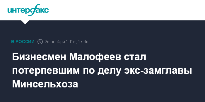 Бизнесмен Малофеев стал потерпевшим по делу экс-замглавы Минсельхоза