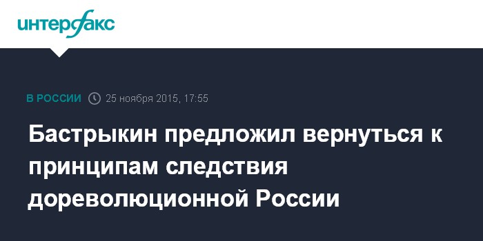Бастрыкин предложил вернуться к принципам следствия дореволюционной России