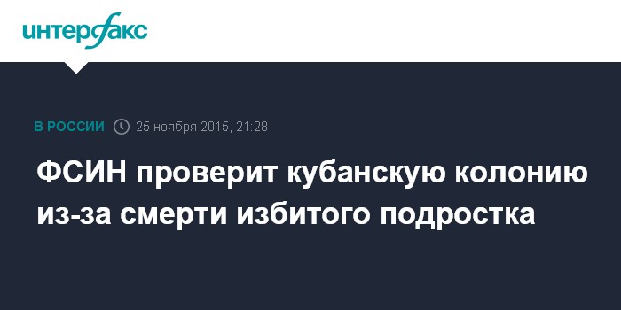 ФСИН проверит кубанскую колонию из-за смерти избитого подростка