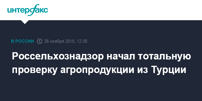Москва. 26 ноября. INTERFAX.RU - Россельхознадзор в четверг приступил к тотальной проверке всей агропродукции, поступающей из Турции.