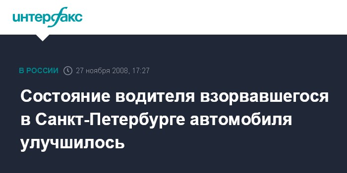 Москва. 27 ноября. INTERFAX.RU - Врачи Военно-медицинской академии Петербурга отмечают положительную динамику в состоянии госпитализированного водителя взорвавшегося у метро "Удельная" автомобиля.