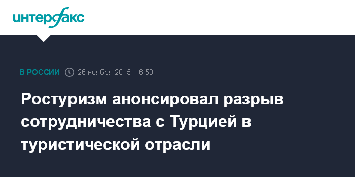Москва. 26 ноября. INTERFAX.RU - Сотрудничество России с Турцией по туризму будет остановлено, сообщил глава Ростуризма Олег Сафонов журналистам в четверг.