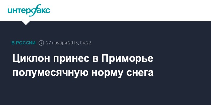 Москва. 27 ноября. INTERFAX.RU - Циклон, проходивший по акватории Японского морякрая, накануне принес в Приморье снег и ураганный ветер.