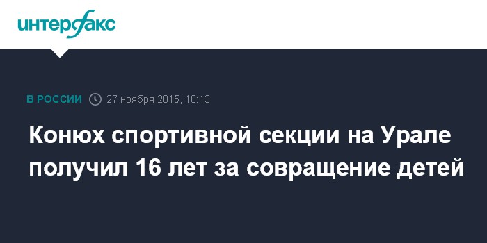 Москва. 27 ноября. INTERFAX.RU - Суд в Челябинской области приговорил сотрудника конно-спортивной секции к 16 годам колонии строгого режима за сексуальное насилие над несовершеннолетними, сообщает пресс-служба регионального управления СКР в пятницу.