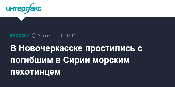 Москва. 27 ноября. INTERFAX.RU - Сотни военнослужащих и жителей Новочеркасска собрались на городском кладбище в четверг, чтобы проститься с матросом контрактной службы Александром Позыничем, погибшим во время спасательной операции по поиску российского летчика в Сирии.