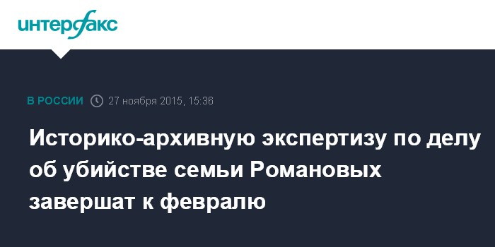 Историко-архивную экспертизу по делу об убийстве семьи Романовых завершат к февралю