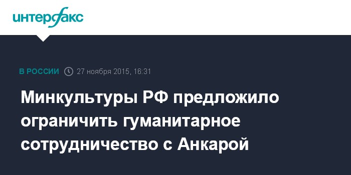 Минкультуры РФ предложило ограничить гуманитарное сотрудничество с Анкарой