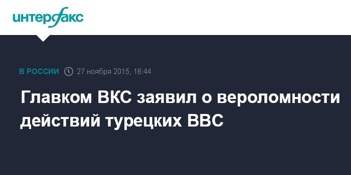 Москва. 27 ноября. INTERFAX.RU - Турецкий истребитель F-16 был наведён на российский самолёт Су-24м с земли, заявил главнокомандующий Воздушно-космическими силами генерал-полковник Виктор Бондарев.