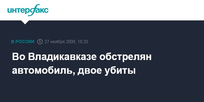Москва. 27 ноября. INTERFAX.RU - Во Владикавказе (Северная Осетия) в четверг неизвестные обстреляли автомобиль "БМВ Х5", в результате убиты двое находившихся в нем человек, еще один получил ранения.
