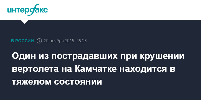 Один из пострадавших при крушении вертолета на Камчатке находится в тяжелом состоянии