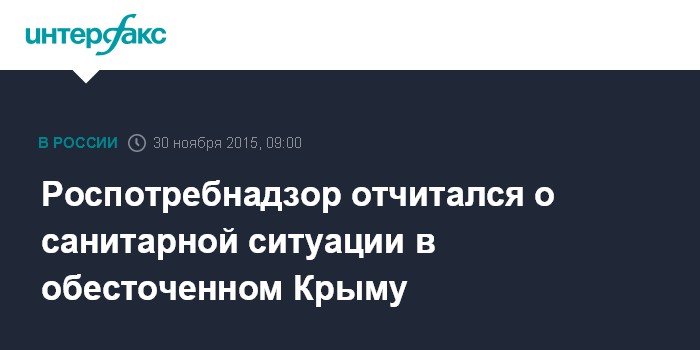 Москва. 30 ноября. INTERFAX.RU – Санитарно-эпидемиологическая ситуация в Крыму и Севастополе в связи с отключением электроснабжения остается стабильной, пробы питьевой воды и продуктов соответствуют норме, сообщила в понедельник пресс-служба Роспотребнадзора.
