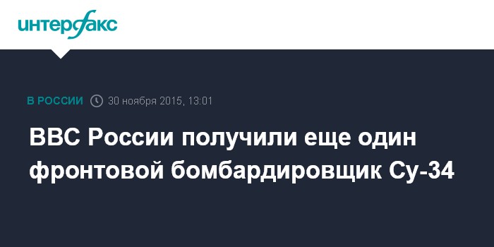 "Сегодня утром самолет Су-34, переданный ВВС России в рамках гособоронзаказа 2015 года, вылетел из аэродрома Новосибирского авиационного завода на одну из авиабаз Южного военного округа в Ростовской области", - сказал собеседник агентства.