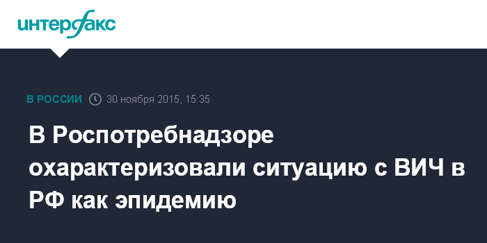 Москва. 30 ноября. INTERFAX.RU - Заболеваемость ВИЧ в России приняла характер эпидемии, вирус все чаще поражает граждан, не входящих в группы риска, сообщила начальник отдела эпидемиологического надзора управления Роспотребнадзора по Санкт-Петербургу Ирина Чхинджерия.
