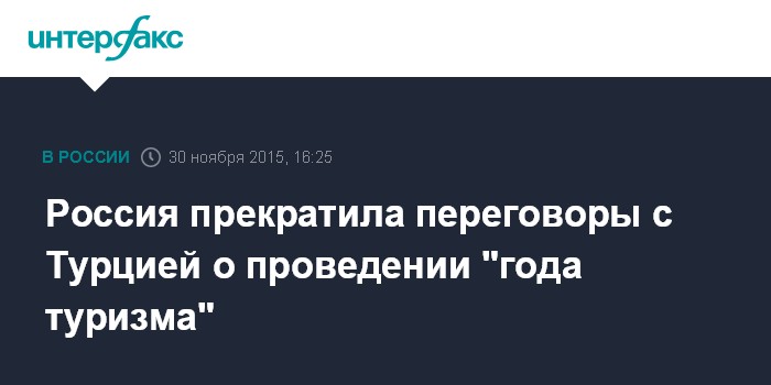 Москва. 30 ноября. INTERFAX.RU - Вице-премьер правительства РФ Ольга Голодец заявила, что переговоры с Анкарой о проведении совместного российско-турецкого "года туризма" в двух стран будут прекращены.