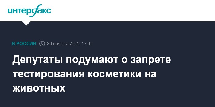 Москва. 30 ноября. INTERFAX.RU - В Госдуму внесен законопроект, значительно ограничивающий проведение испытаний на животных ингредиентов косметики и парфюмерии.
