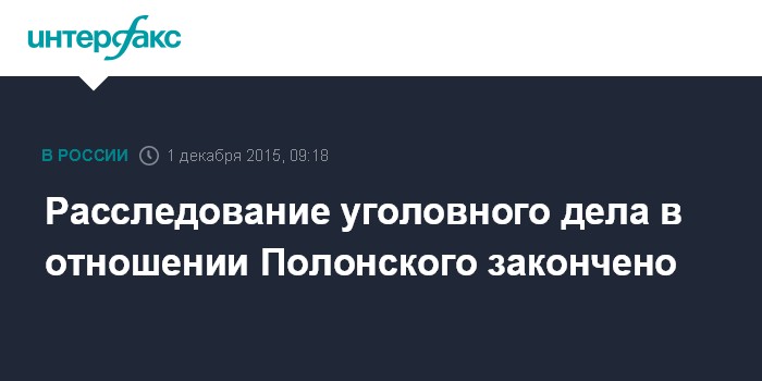 "Нас уведомили, что предварительное следствие закончено. Следователь обещал, что в середине декабря Полонский и адвокаты начнут знакомиться с материалами дела", - сказал "Интерфаксу" адвокат Сергея Полонского Константин Рыбалов.