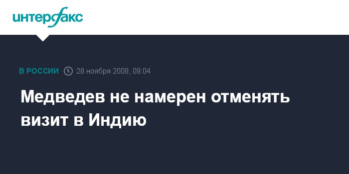 Москва. 28 ноября. INTERFAX.RU - Президент России Дмитрий Медведев не станет отменять свой визит в Индию.