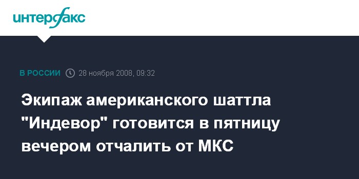 Москва. 28 ноября. INTERFAX.RU - Полет многоразового космического корабля "Индевор" в составе Международной космической станции (МКС) завершится в пятницу вечером.