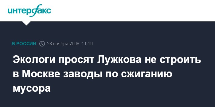 Экологи просят Лужкова не строить в Москве заводы по сжиганию мусора