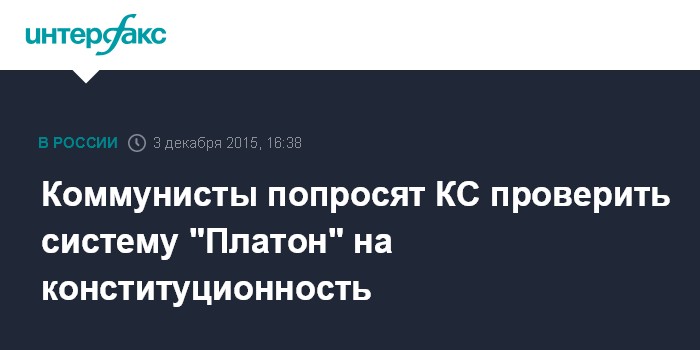 Москва. 3 декабря. INTERFAX.RU - Фракция КПРФ инициирует запрос в Конституционный суд РФ о соответствии Конституции новой системы "Платон", отслеживающей путь большегрузных автомобилей и устанавливающих для них плату.