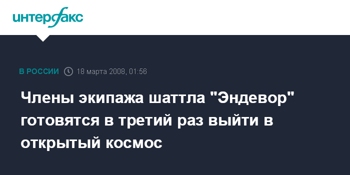 Москва. 18 марта. ИНТЕРФАКС-АВН - Астронавты НАСА Ричард Линнехан и Роберт Бенкен в третий раз за время экспедиции шаттла "Эндевор" на орбиту совершат выход за пределы Международной космической станции (МКС).