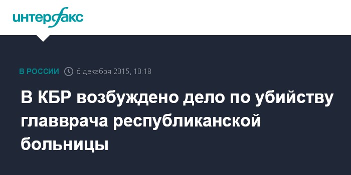 В КБР возбуждено дело по убийству главврача республиканской больницы