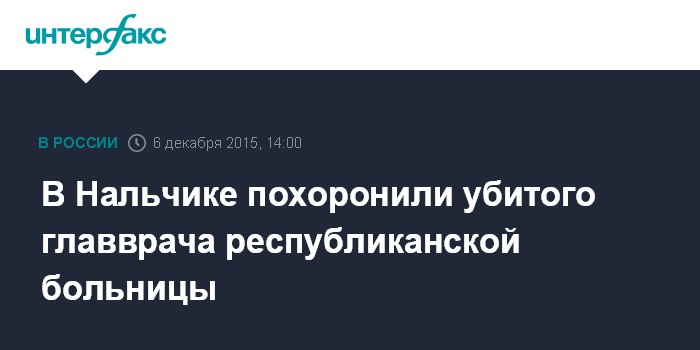 Москва. 6 декабря. INTERFAX.RU - Убитого в собственном доме главврача республиканской клинической больницы Минздрава Кабардино-Балкарии, депутата парламента республики Хадиса Боттаева похоронили в поселке Хасанья, пригороде Нальчика.
