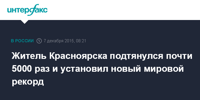 Житель Красноярска подтянулся почти 5000 раз и установил новый мировой рекорд
