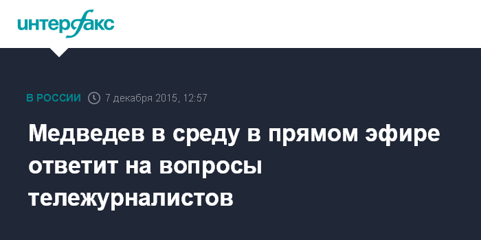 Медведев в среду в прямом эфире ответит на вопросы тележурналистов