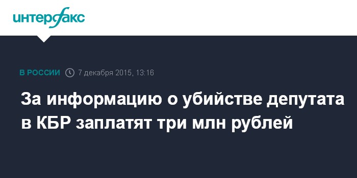 За информацию о убийстве депутата в КБР заплатят три млн рублей
