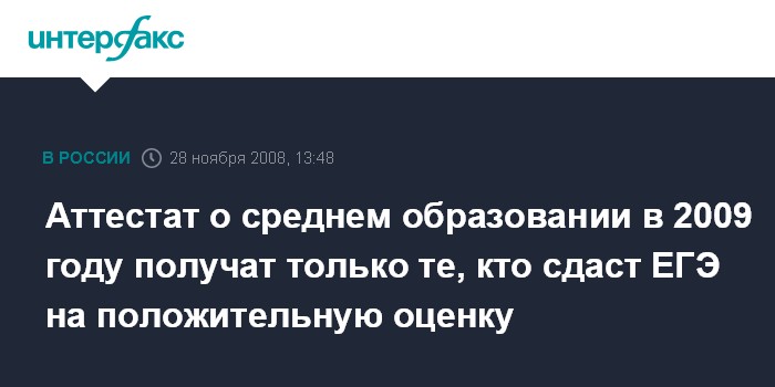 Аттестат о среднем образовании в 2009 году получат только те, кто сдаст ЕГЭ на положительную оценку