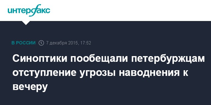 Москва. 7 декабря. INTERFAX.RU - Синоптики прогнозируют ослабление ветра в Санкт-Петербурге, жители северной столицы сообщают в социальных сетях о заметном подъеме уровня воды в Неве.