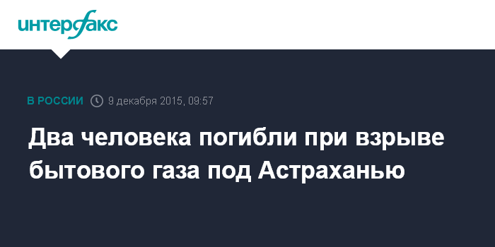 Москва. 9 декабря. INTERFAX.RU - Взрыв бытового газа произошел в селе Осыпной Бугор Астраханской области, в результате два человека погибли, еще двое пострадали, сообщил "Интерфаксу" руководитель пресс-службы Главного управления МЧС по Астраханской области Дмитрий Дубровский в среду.