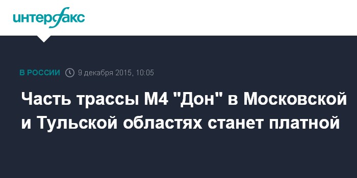 Часть трассы М4 "Дон" в Московской и Тульской областях станет платной