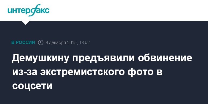 "Предъявили обвинение по части 1 статьи 282 УК РФ", - сказал Демушкин "Интерфаксу" в среду.
