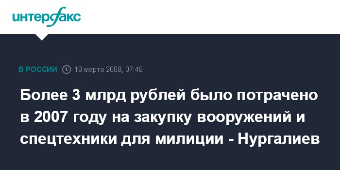 Более 3 млрд рублей было потрачено в 2007 году на закупку вооружений и спецтехники для милиции - Нургалиев