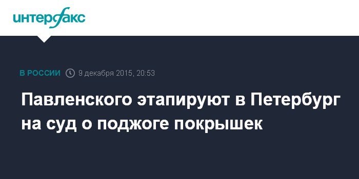 Москва. 9 декабря. INTERFAX.RU - Художника-акциониста Петра Павленского этапируют из Москвы в Петербург для суда по делу о поджоге покрышек в поддержку украинского майдана, сообщила "Интерфаксу" его адвокат Светлана Ратникова.
