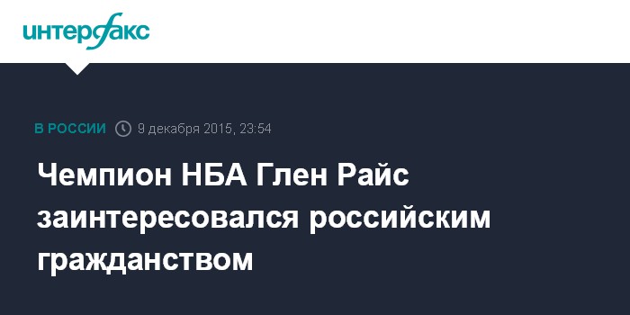 Москва. 9 декабря. INTERFAX.RU - Победитель Национальной баскетбольной ассоциации (НБА) американец Глен Райс заявил, что был бы не против получить гражданство РФ по примеру своего соотечественника боксера Роя Джонса.