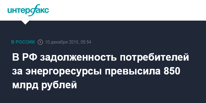 В РФ задолженность потребителей за энергоресурсы превысила 850 млрд рублей