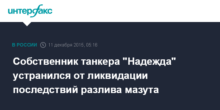 Собственник танкера "Надежда" устранился от ликвидации последствий разлива мазута