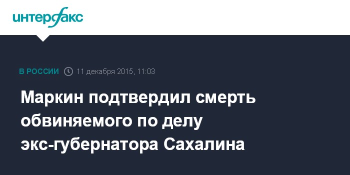 Маркин подтвердил смерть обвиняемого по делу экс-губернатора Сахалина