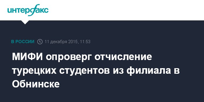 Москва. 11 декабря. INTERFAX.RU - В руководстве обнинского института атомной энергетики (ИАТЭ) - филиала Национального исследовательского ядерного университета МИФИ опровергли появившуюся в ряде СМИ информацию об отчислении турецких студентов.