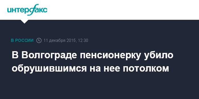 Москва. 11 декабря. INTERFAX.RU - Следственное управление СКР по Волгоградской области проводит проверку по факту гибели 61-летней женщины в результате обрушения на нее штукатурки с потолка в квартире дочери.