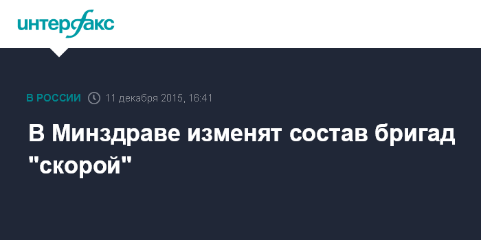 Москва. 11 декабря. INTERFAX.RU - Минздрав РФ изменяет порядок оказания скорой медицинской помощи, допуская включение в бригады медсестер и исключая из состава должности санитаров-водителей и фельдшеров-водителей.