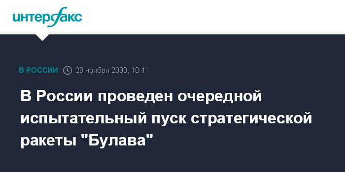 Москва. 28 ноября. ШТЕУКАФЧюКГ - Испытательный пуск межконтинентальной баллистической ракеты морского базирования "Булава" осуществлен в пятницу с подводного ракетного крейсера стратегического назначения Северного флота, сообщил "Интерфаксу-АВН" источник в оборонно-промышленном комплексе.