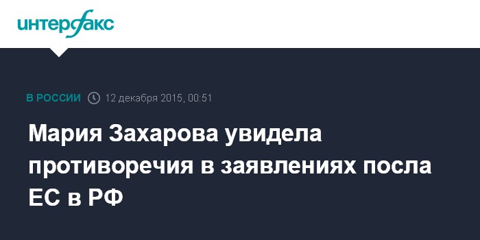 Москва. 12 декабря. INTERFAX.RU - Официальный представитель МИД РФ Мария Захарова увидела противоречия в недавних заявлениях посла ЕС в России Вигаудаса Ушацкаса.